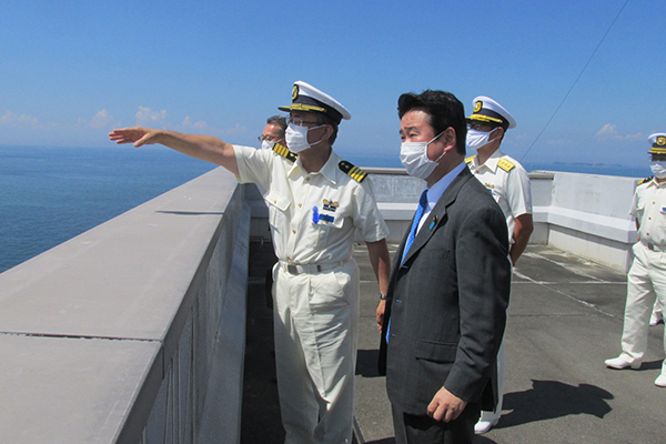 和田政務官は8月31日(月)、愛知県を訪問し、伊勢湾海上交通センターを視察するとともに、田原市内の道路施設、港湾施設の現況等を視察しました。道路施設としては、道の駅「田原めっくんはうす」と主要地方道豊橋渥美線を、港湾施設としては、船上等から三河港を、それぞれ視察しました。