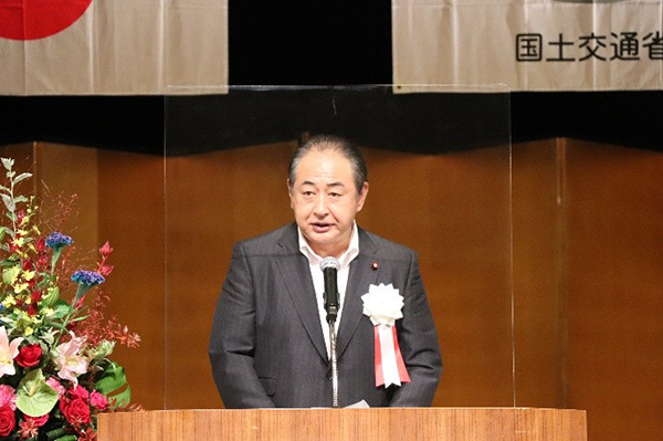 副大臣は、挨拶のなかで、「能代港大森地区岸壁は、秋田県沿岸域を中心に検討されている洋上風力発電設備の建設に対応するための岸壁を整備するものであり、一日も早い完成を目指し、しっかり取り組んで参ります。」と述べました。