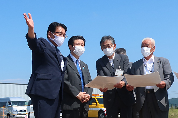 国道4号築館バイパスの概要について説明を受ける和田政務官