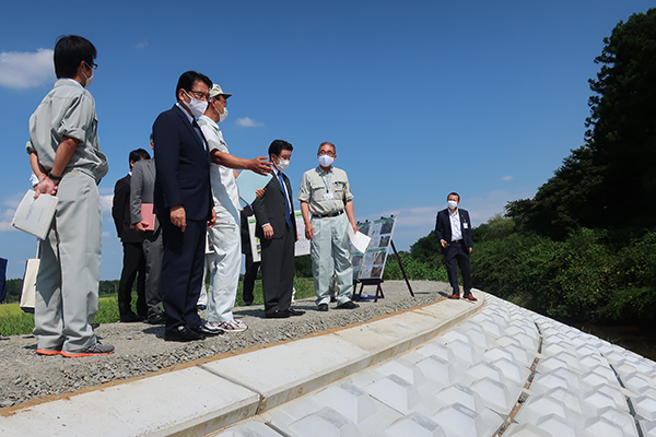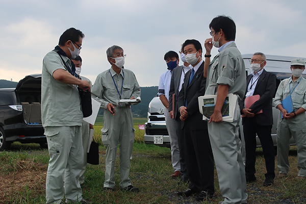 照越川の復旧状況について説明を受ける和田政務官