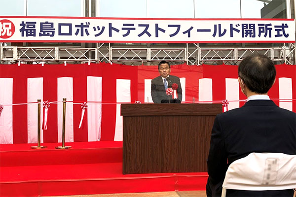 福島ロボットテストフィールド開所式で祝辞を述べる赤羽大臣