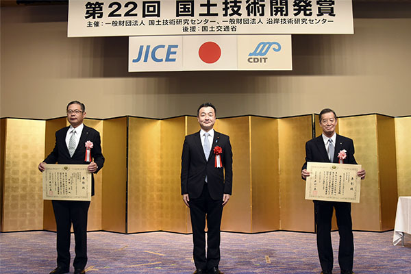 国土技術開発賞は、建設分野における技術開発者に対する研究開発意欲の高揚と建設技術水準の向上を図ることを目的として、建設分野における優れた新技術及びその開発に貢献した技術開発者を対象に、国土交通大臣が表彰するものです。