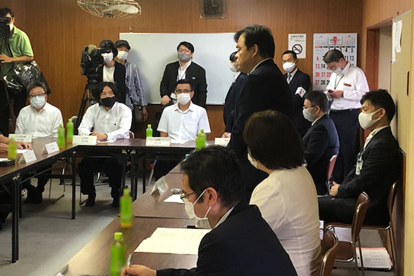 兵庫県城崎温泉の観光関係事業者と意見交換をする赤羽大臣