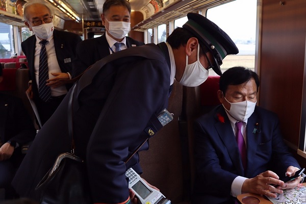 デジタルフリーパス(MaaS)による移動を体験する赤羽大臣