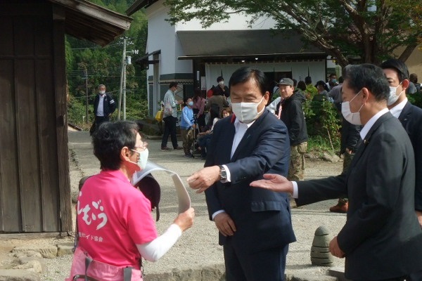 大内宿を視察する赤羽大臣