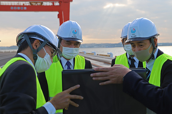 南本牧ふ頭コンテナターミナルで説明を受ける小林政務官