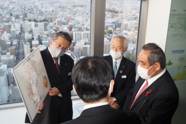 北海道新幹線札幌駅予定地、札幌駅交通ターミナル検討箇所等の説明を受ける大西副大臣
