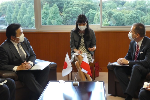 10月21日(水)、赤羽大臣は、ポーランド共和国のパヴェウ・ミレフスキ駐日大使の表敬訪問を受けました。