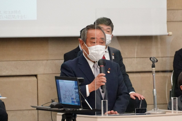 大西副大臣は挨拶の中で、先月に北海道を視察したことに触れつつ、「今年度で終了する『防災・減災、国土強靱化のための3か年緊急対策』後も、強靱な道路ネットワークの構築を加速させるとともに、インフラの老朽化対策などを中長期的な視点にたって取り組む必要がある。」と述べました。