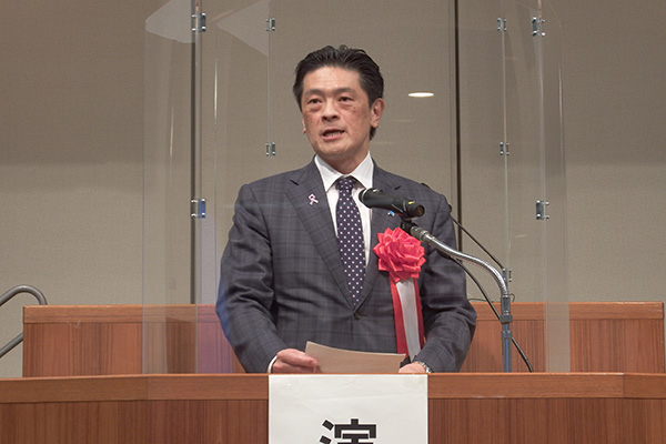 挨拶をする岩井副大臣