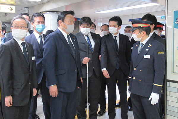 12月2日(水)、赤羽大臣は、11月29日(日)に視覚障害者の転落事故が発生した東京メトロ 東西線 東陽町駅を視察しました。