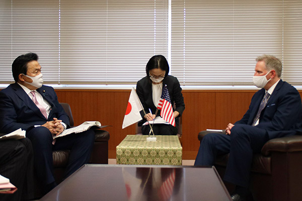 赤羽大臣とヤング臨時代理大使は、日米間の交流の再開に向けた施策などについて意見交換を行い、引き続き両国で連携を強化していくことを確認しました。