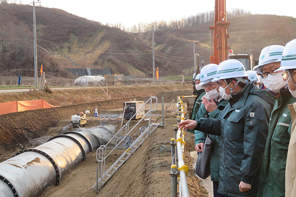 7日は新千歳空港の視察を始め、道路整備事業や国営農地再編整備事業、千歳川遊水地群事業など主要事業の概要や整備状況について説明を受けたほか、平成30年北海道