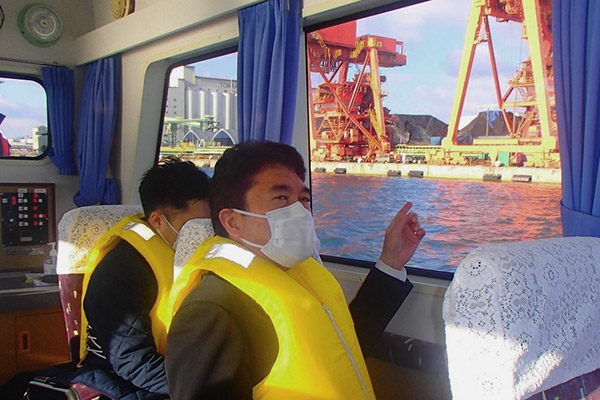 苫小牧港西港を視察する小林政務官