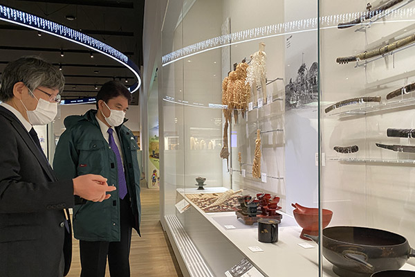 民族共生象徴空間(ウポポイ)の国立アイヌ民族博物館で説明を受ける小林政務官