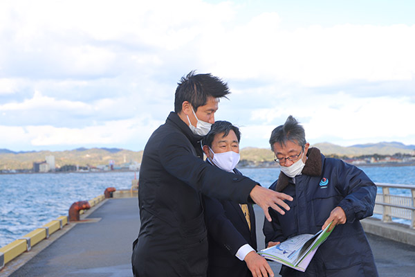 館山港にて金丸市長より説明を受ける朝日政務官