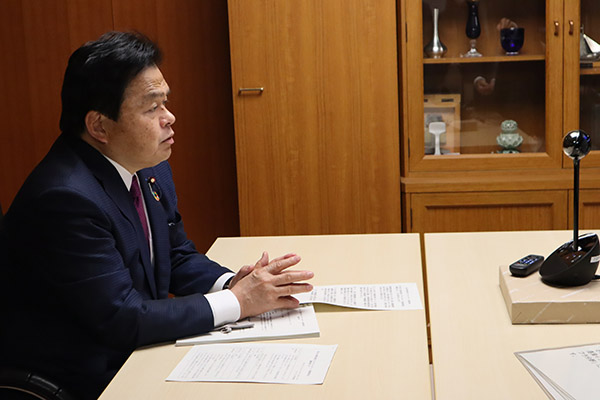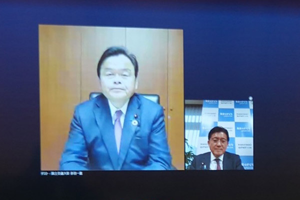 オンライン会議の様子(赤羽大臣と平井大臣)