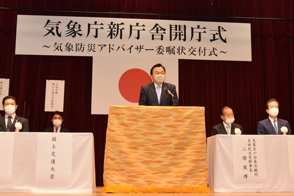 【令和2年12月17日】 気象庁新庁舎開庁式典に赤羽大臣、岩井副大臣、小林政務官、朝日政務官、鳩山政務官が出席