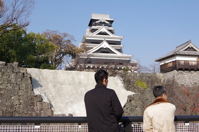 熊本城(熊本市)で復旧状況の視察を行う朝日政務官