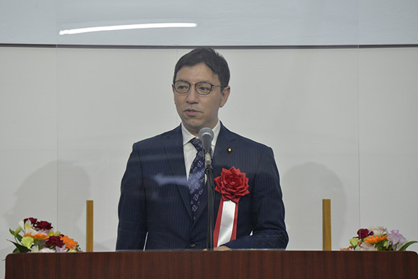 挨拶のなかで、「小石原川ダムの完成は、治水のみならず利水においても地域の生活基盤の安定等に大いに貢献できる。また、水と共に生き災害に屈しないまちづくりを目指し、あらゆる関係者が協力して『流域治水』を推進していく。」旨、述べました。