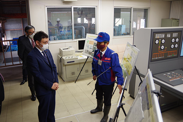 枝光排水機場において浸水対策の説明を受ける鳩山政務官