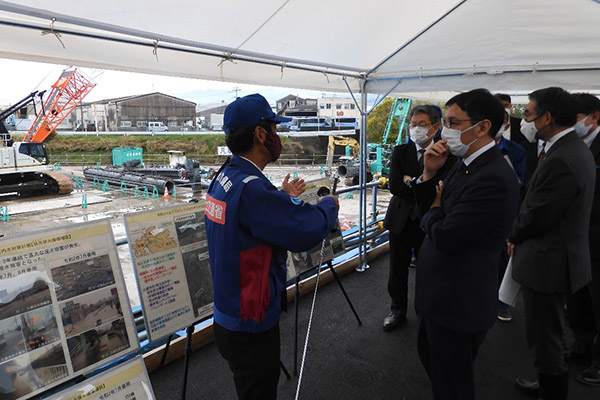 また、同日午後には、筑後川水系で実施している浸水対策重点地域緊急事業及び国道3号鳥栖久留米道路の視察を行いました。