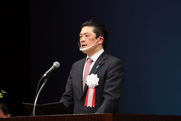 岩井副大臣は式典の挨拶で、令和元年10月の台風19号による中央自動車道大月~八王子インターチェンジ間の通行止めによる物流への影響に触れながら、「今回の開通により高速道路ネットワークの代替性が確保され、国土強靱化に大きく寄与する」、「激甚化、頻発化する災害に対して、防災・減災・国土強靱化の取り組みを一層推進していく」旨を述べました。