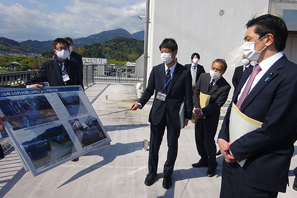 麻機遊水地(静岡県事業)を視察する岩井副大臣