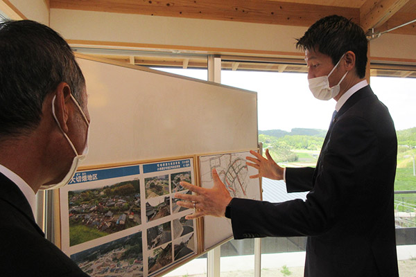 西原村大切畑地区の再生状況の説明を受ける朝日政務官