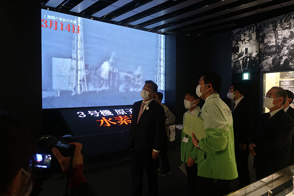 東日本大震災・原子力災害伝承館を視察する赤羽大臣