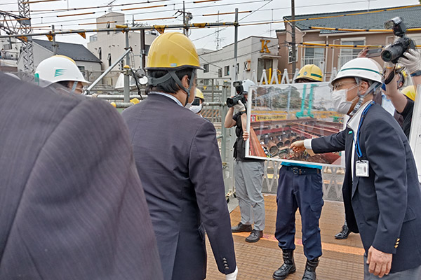 西武鉄道新宿線連続立体交差事業の現場を視察する赤羽大臣