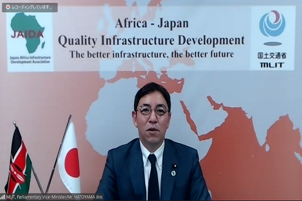 5月26日(水)、鳩山国土交通大臣政務官は、ケニア共和国との間で開催された「第1回 日・ケニア質の高いインフラ対話」(オンライン開催)に出席しました。本会議は、2015年に同国との間で開催された官民インフラ会議後の相手国関係者と我が国インフラ関連企業等との対話の継続を目的に開催されました。