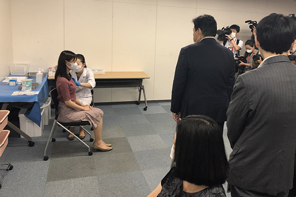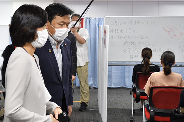 ワクチン接種の様子を視察する赤羽大臣