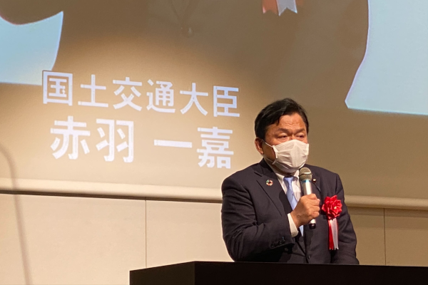 フォーラム冒頭にて来賓挨拶する赤羽大臣