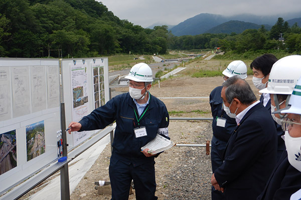 ペケレベツ川災害復旧助成事業の説明を受ける大西副大臣