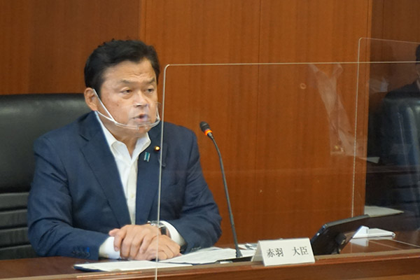 赤羽大臣は、冒頭の挨拶において、近年の気候変動による自然災害の激甚化・頻発化などに鑑み、待ったなしの課題である地球温暖化対策に向け、「国土交通グリーンチャレンジ」を全省的に実行するため、新たに「国土交通省グリーン社会実現推進本部」を設置し、大臣自らが先頭に立ち、関係省庁や産業界との連携を一層強化しながら、「脱炭素が主流となる社会」の実現に取り組む旨述べました。