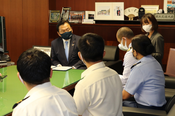 9月9日(木)、赤羽大臣は、海上保安政策プログラム第6期修了生7名の表敬訪問を受けました。