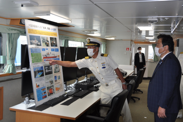 9月17日(金)、赤羽大臣は、我が国の海洋調査等を担う海上保安庁測量船「光洋」を視察しました。