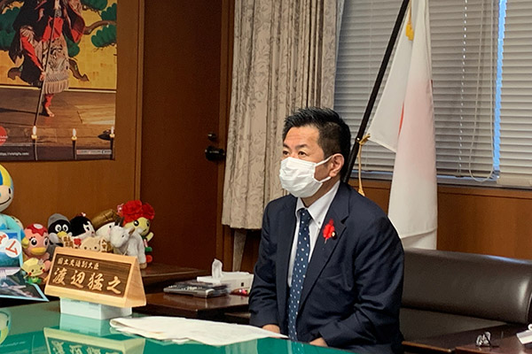 オンライン会議に出席する渡辺副大臣
