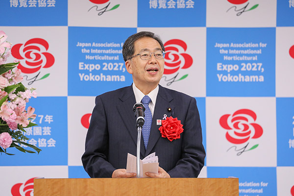 来賓として挨拶した斉藤大臣は、2027年に横浜市で開催される国際園芸博覧会において、我が国が培ってきた自然との関係性の中で、自然環境が持つ多様な機能を暮らしにいかす知恵や文化について、その価値を再評価し、持続可能な社会の形成に活用することなどにより、幸福感が深まる社会の創造を目指すとともに、グリーンインフラ、スマートシティ、ゆとりとにぎわいのあるまちづくりの取組をより一層加速させていきたいと述べました。