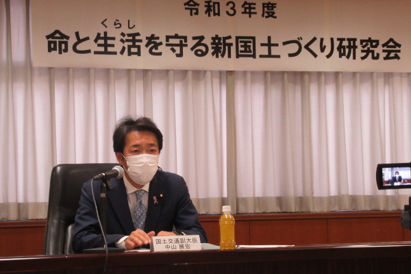 来賓として挨拶した中山副大臣は、「気候変動に対応するため、事前防災対策の加速化に加え、「流域治水」の取組を強力に推進する必要があり、各県におかれては、河川管理者および総合的な行政主体の立場として、特定都市河川の指定や土地利用規制・誘導等において大きな役割を担うことになるため、ご協力をお願いしたい。「防災・減災、国土強靱化のための5か年加速化対策」も活用し、水災害に強い国土づくりを進めるため、必要・十分な予算が確保できるよう努めていく。」と述べました。