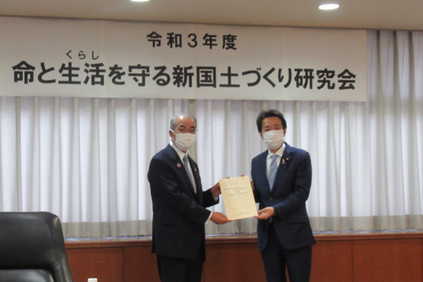 を守る新国土づくり研究会」に出席しました。本研究会の会長である中村長崎県知事をはじめ、湯﨑広島県知事、飯泉徳島県知事、塩田鹿児島県知事ら11県から提言を受けるとともに、今年度の研究会のテーマである「頻発・激甚化する自然災害への防災・減災対策について~国土強靱化に向けた「流域治水」の推進~」に基づき、活発な議論が交わされました。