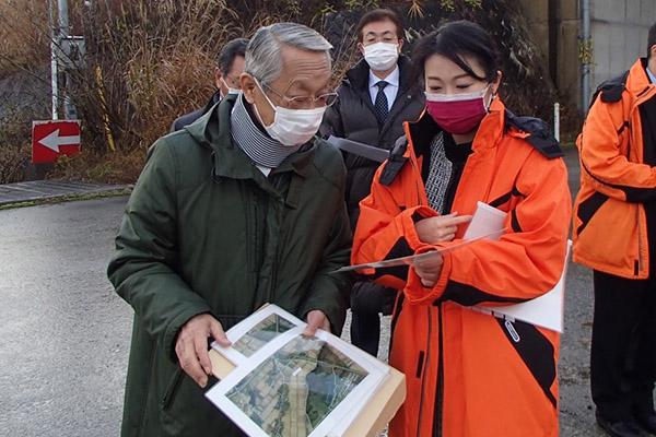 また、シンポジウムの出席に先立ち、道の駅の候補予定地を視察し、地元関係者から現地状況などの説明を受けました。