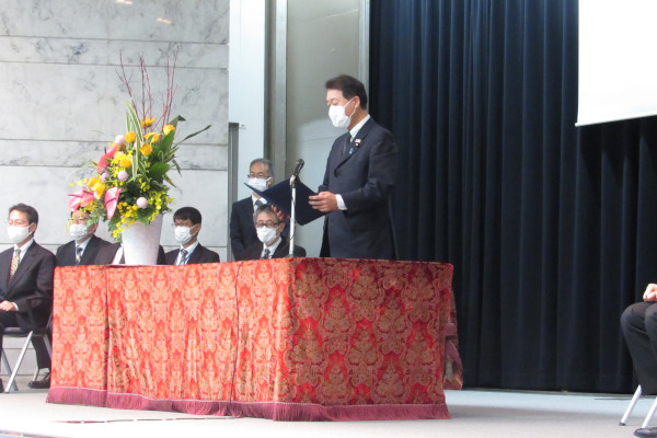 挨拶をする泉田政務官