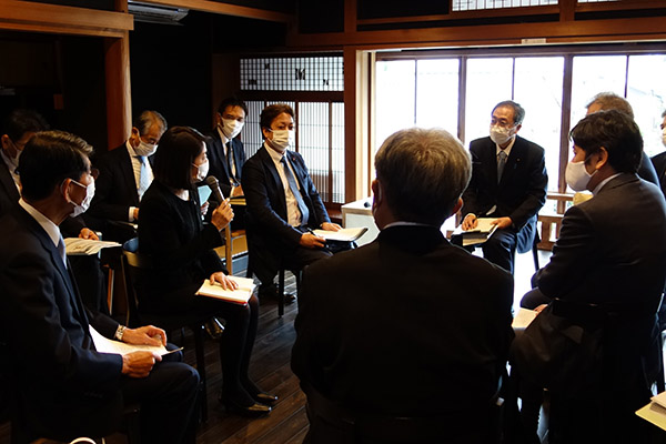 宮津市内(古民家レストラン)において車座意見交換会を行う斉藤大臣
