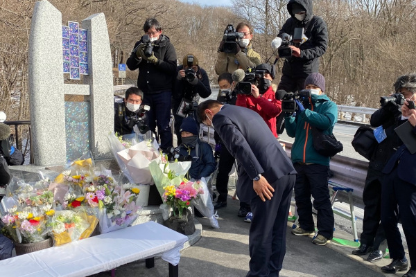 その後、ご遺族、軽井沢町長などと意見交換をするとともに、献花・黙祷を行いました。