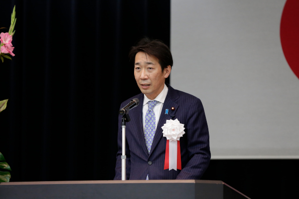 表彰式にて祝辞を述べる中山副大臣