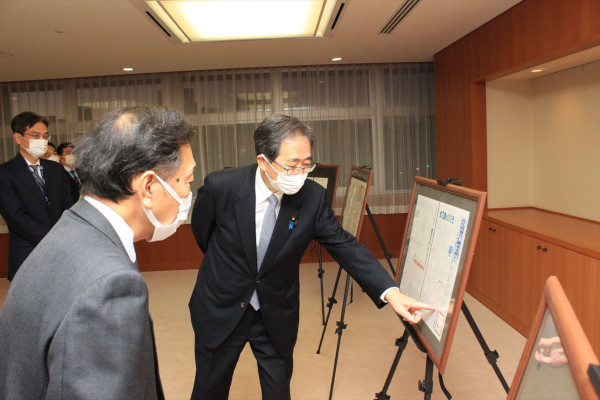 1月21日(金)、斉藤大臣は、応募総数1,141作品の中から事前選考で選ばれた各部門3作品について、審査員から説明を受け、最も優れた作品として「国土交通大臣賞」を選定しました。