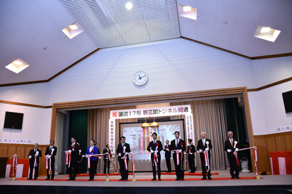 政務官は、挨拶のなかで「新三国トンネルの開通により首都圏と新潟港が結ばれることで、地域経済の発展に寄与するとともに、災害時の緊急自動車等の通行に必要な道路であることから、国土強靱化に資するものと期待しています。」と述べました。