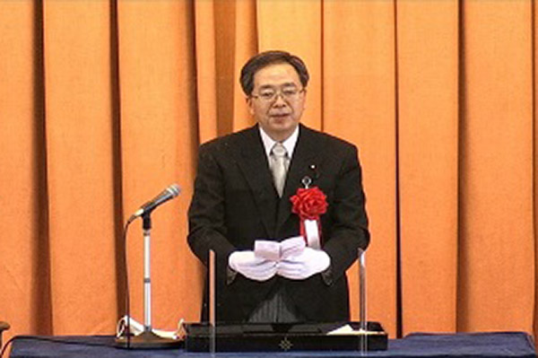祝辞を述べる斉藤大臣(於:海上保安学大学校)